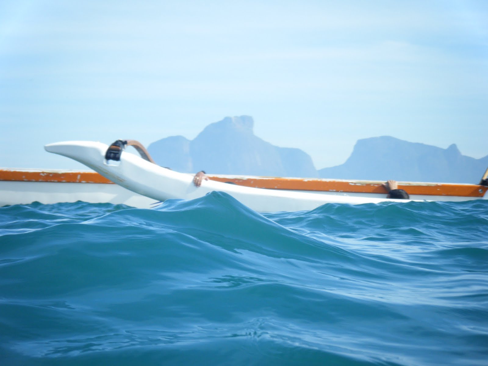 O mar finalmente estava bem mais limpo com águas mais frias e não houve qualquer problema ao contornar o Costão do leme, a canoa andou muito bem com Fábio no leme.