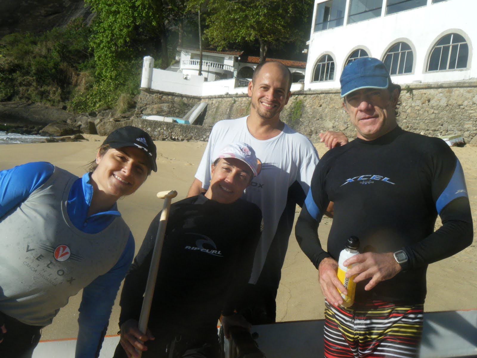 Chegada e saída na areia da praia Vermelha com tranquilidade. Depois de subir nossa canoa foi a hora de ajudar a outra canoa que também vinha com cinco remadores.